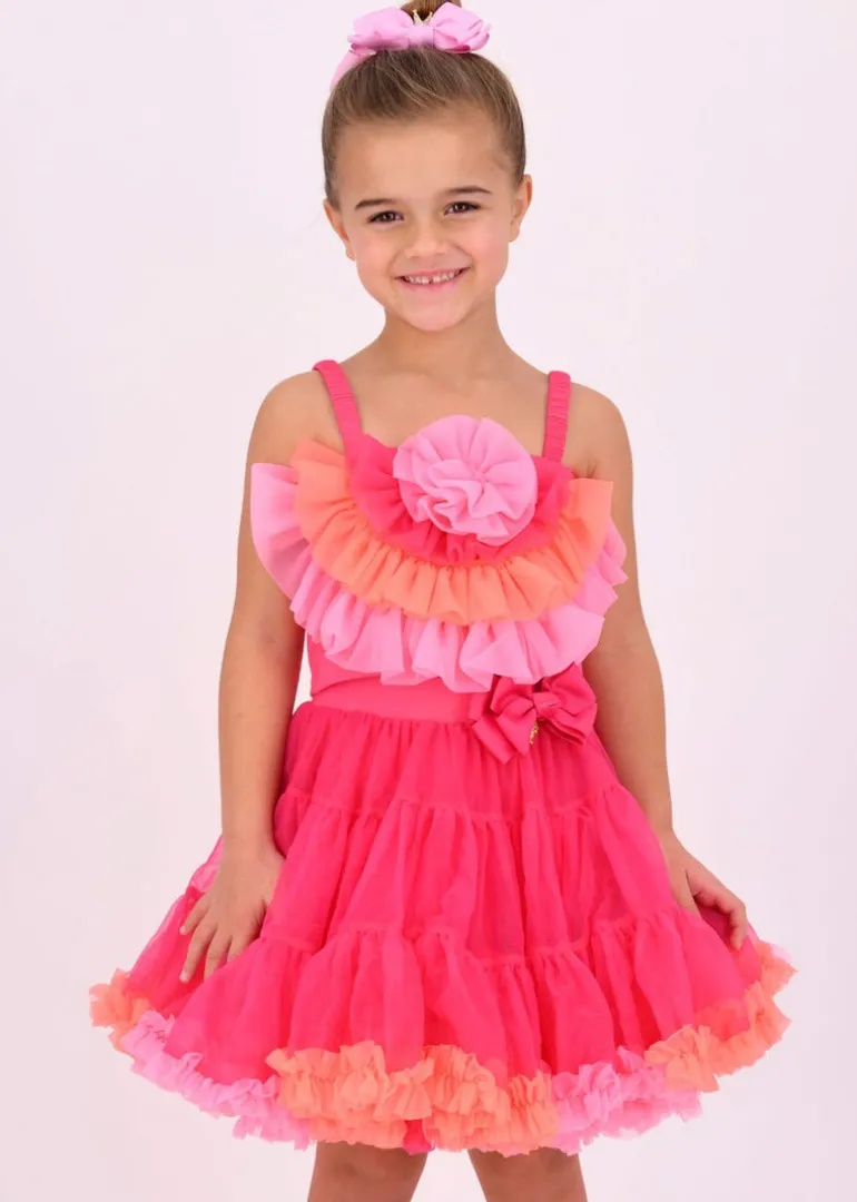 Angel’s Face Top Fucsia con Tulle Rosetta per Bambine