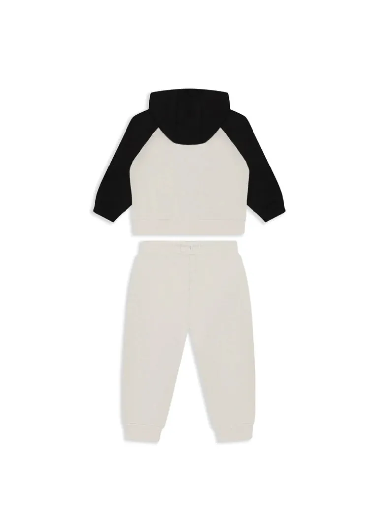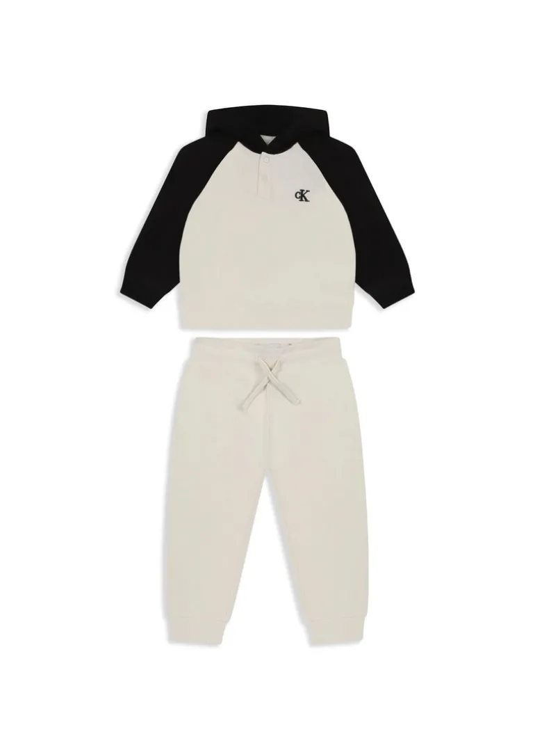 Scopri il set da 2 pezzi firmato Calvin Klein Kids per neonati, composto da una felpa con cappuccio e pantaloni della tuta in morbido cotone elasticizzato. Il taglio regolare assicura una vestibilità comoda per i più piccoli, mentre il design color-block dona un tocco moderno e dinamico. La felpa presenta cappuccio con allacciatura a due bottoni, polsini e orlo a costine, ed è impreziosita dal logo monogramma Calvin Klein ricamato sul petto. I pantaloni coordinati sono dotati di vita elasticizzata con coulisse e finiture a costine per garantire comfort e praticità durante tutta la giornata. Prodotto in Europa, questo set unisce stile e qualità per il guardaroba dei più piccoli.