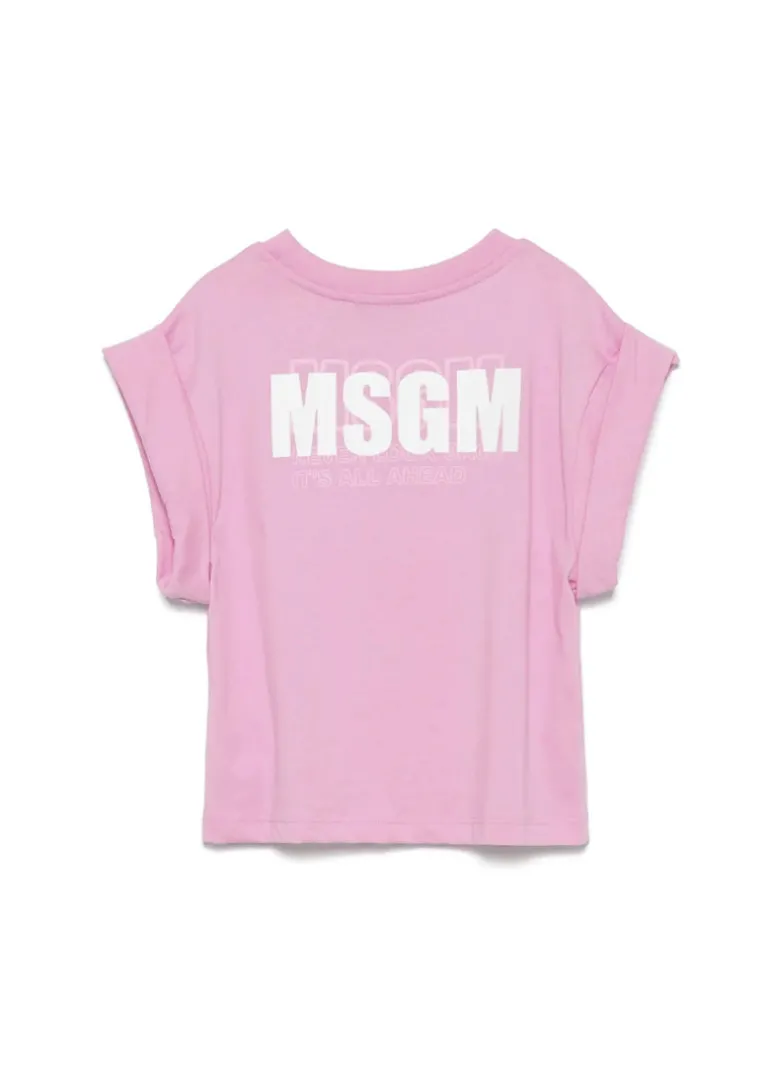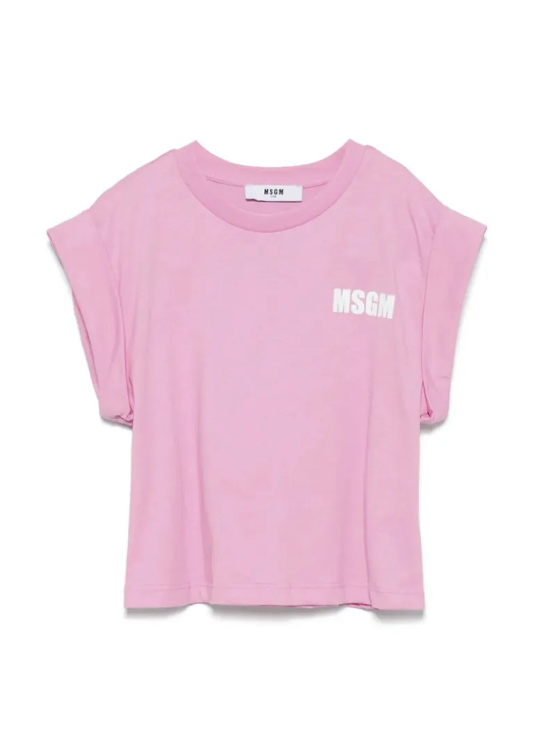 La t-shirt rosa magenta di MSGM Kids è un capo dallo stile casual e dinamico, ideale per aggiungere un tocco di colore e personalità al guardaroba delle più piccole. Realizzata in cotone morbido, presenta una stampa con logo sul petto che ne sottolinea il carattere distintivo. Il girocollo classico e i risvolti sulle maniche aggiungono un dettaglio trendy, perfetto per abbinamenti versatili sia con jeans che con gonne o shorts.