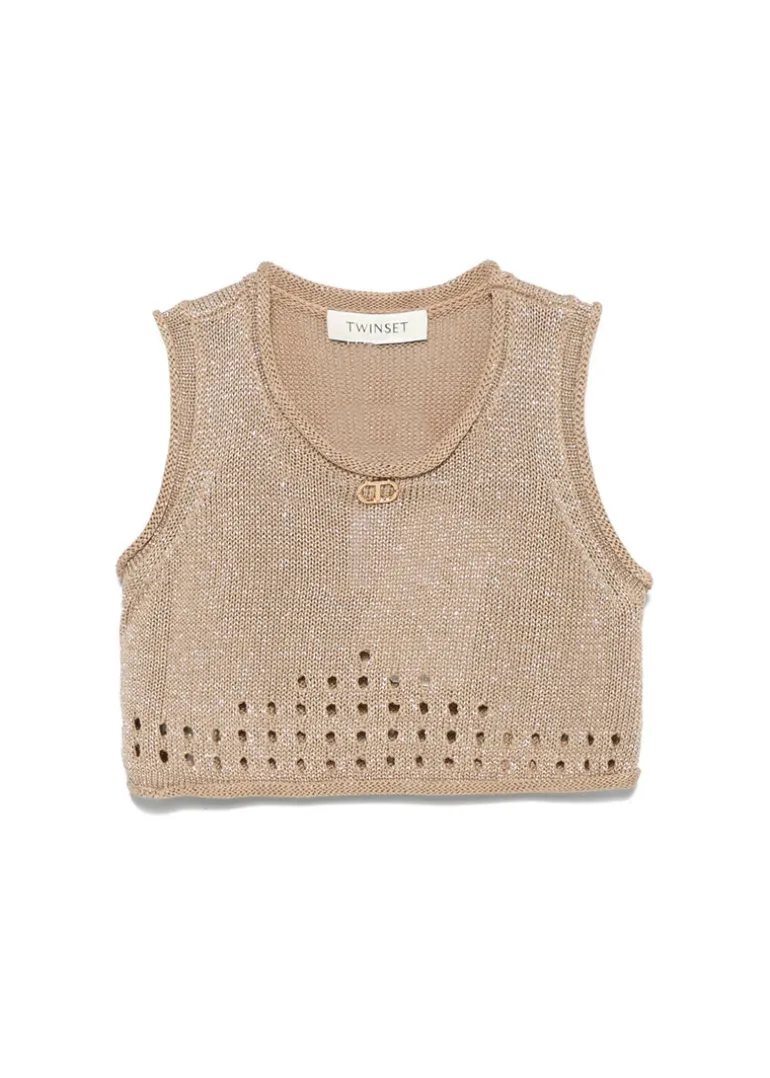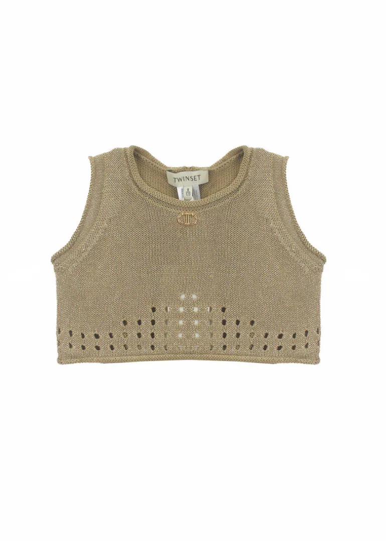 Twinset Kids Top Canapa Forato con Logo per Bambine